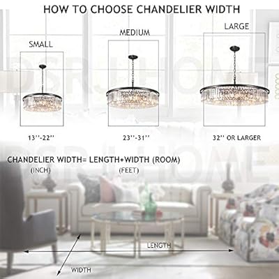 The american lighting association recommends sizing a chandelier 12 inches less in diameter than the table's smallest width.